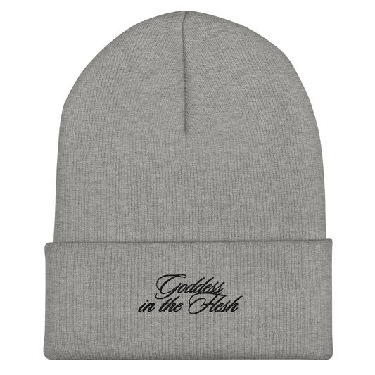 ‘Goddess in the flesh’ Cuffed Beanie x black